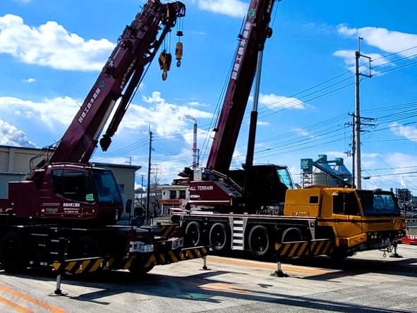 株式会社瀧本鉄工建設は愛媛県四国中央市を中心に10tのミニラフターから100tオールテレーンまで所有し幅広い工事に対応します。気軽にお問い合わせください。