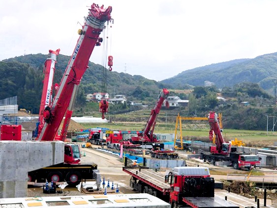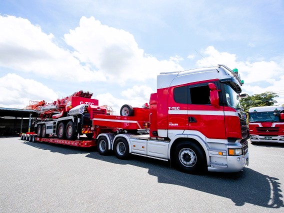 株式会社木村建設運輸は特殊重機のスペシャリストです。重機運輸、リース事業を始め、重量物の資材運輸、橋梁架設工事、土木工事などを行っている会社です。大型の特殊クレーンやトレーラーなど、工事のニーズに合った車両を多数保有しており、重機に関しては九州でもトップクラスの保有数を誇っております。