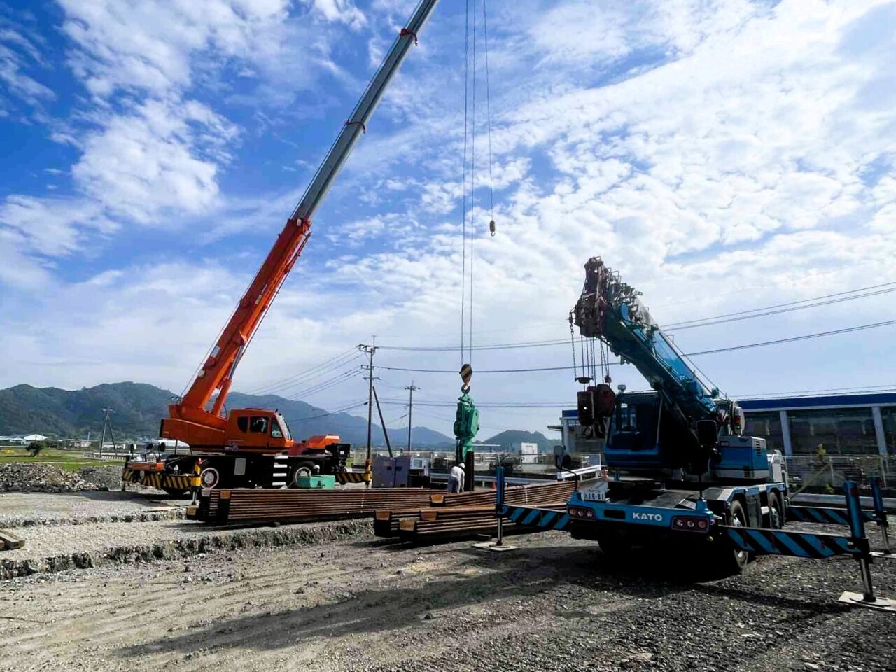 株式会社重建は熊本県を中心にオペレータ付クレーンリースを行っております。13tラフターから80tラフターに至るまで多様な機種を取り揃えております。遠方への出張や基礎工事の相番作業も対応致します。日頃から安全作業に取り組んでおりますのでお気軽にご相談下さい。