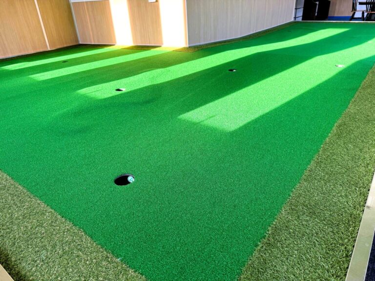室内にはパター練習スペースも設置されております。なお、ゴルフ練習場のすぐ隣は株式会社野洲サルベージのクレーン置場となっております。