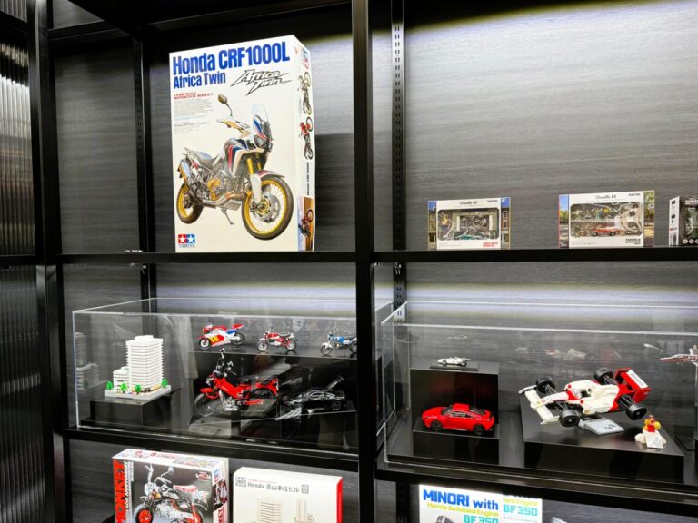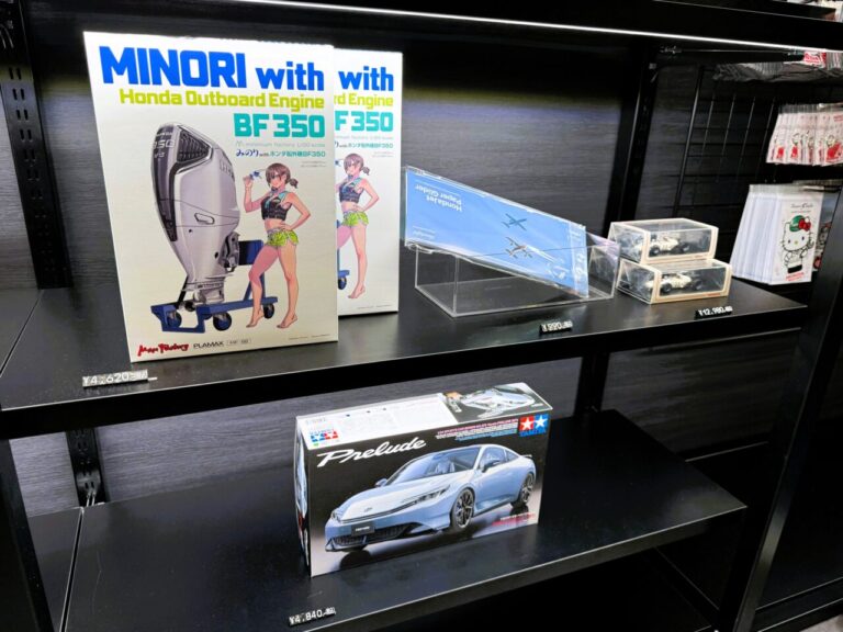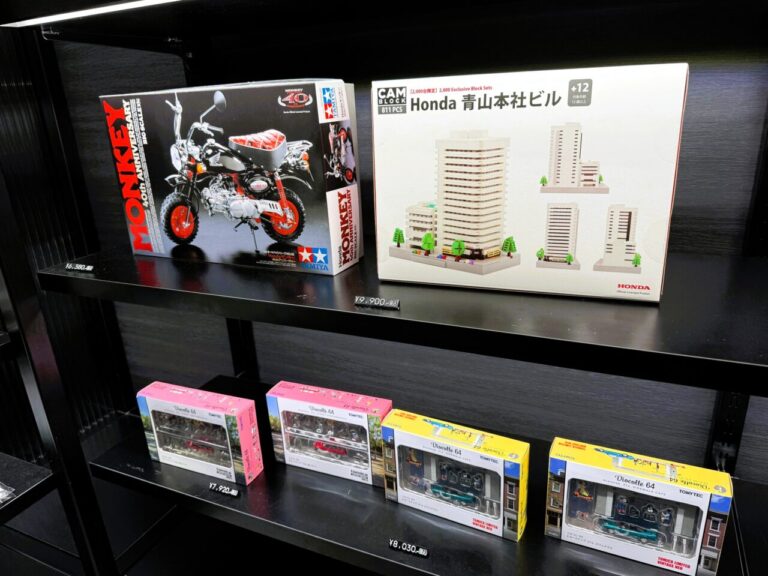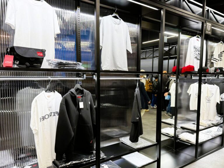 ホンダブースではTシャツ・バッグ・模型などのグッズが販売されています。