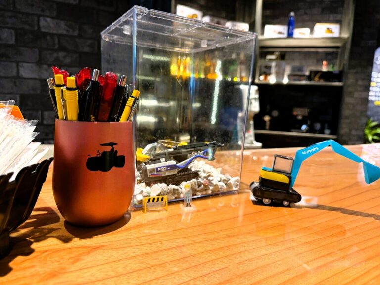 建設業の人手不足を背景に「子供たちに小さい頃から重機とふれあい、未来の仕事の選択肢にしてほしい。」という願いが込められたカフェでもあります。皆様も香川県を訪れた際には覗いてみましょう。