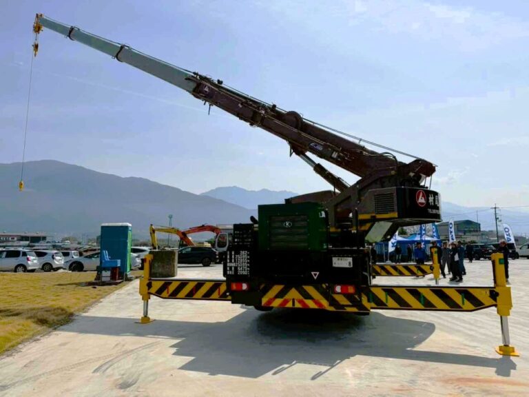 2026年4月、愛媛県四国中央市にあります高橋車輌株式会社でKATO製の新型25tラフターの新製品展示会が行われました。