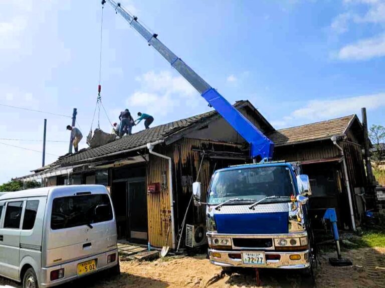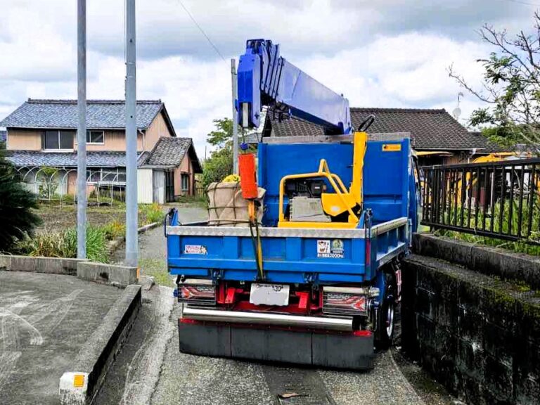 今回、鹿児島県薩摩川内市にあります藏元クレーン工業のめずらしい「クレーン付きダンプトラック」の画像を紹介いたします。特別に狭い箇所でも進入に優れております。