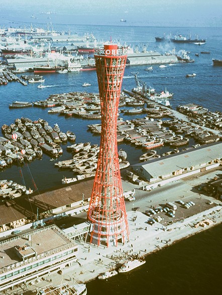 神戸の街を象徴する神戸ポートタワーは1963年11月に開業しました。港湾地域活性の願いが込められたタワーは、神戸港の開港90周年を記念する事業として工事がスタートされ、株式会社大林組で施工されました。その特徴的な鼓型の形状と港に映える美しい色彩で多くの人に愛されています。