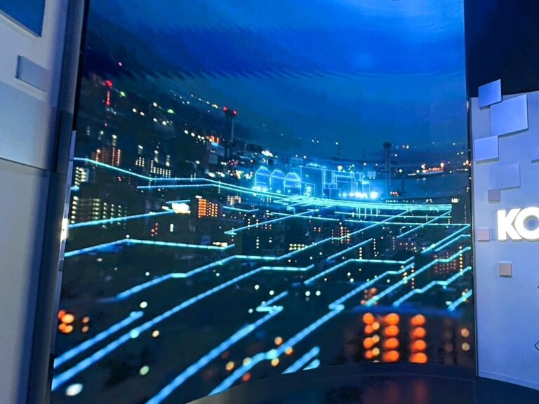 「ダイナミックゾーン」には高さ5.25mの大迫力モニターでものづくりのイメージを表現しています。豊な未来の創造のために進化・発展していく現在と未来を表現しています。