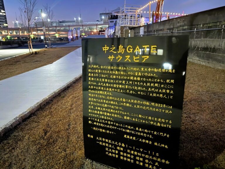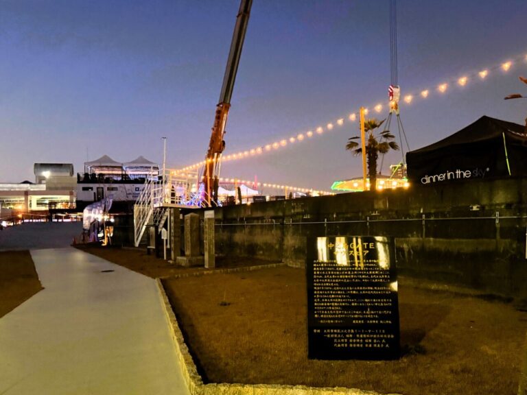 会場に到着すると、まず目に飛び込んでくるのは「中之島GATE サウスピア」の石碑です。ここはかつて、大阪の恩人・五代友厚が外国官権判事として赴任した「川口運上所(後の大阪税関)」があった場所。 かつて海外文化の窓口だったこの地が、今は「空飛ぶレストラン」という最先端のエンタメを受け入れている歴史的背景に胸が熱くなります。