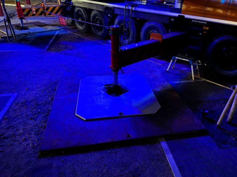 念の為にアウトリガーの足元を確認してみると敷鉄板は二重敷きにされており、安全面も確保されております。「指差呼称よし!」です。