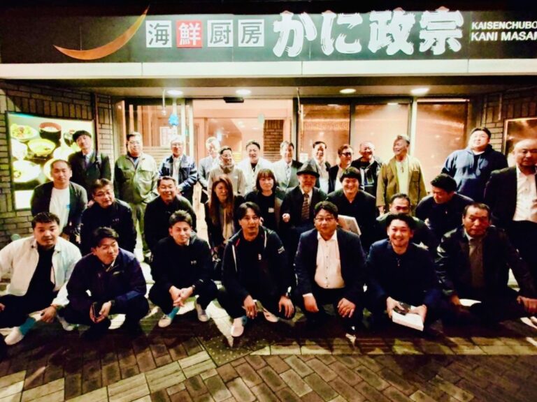 100回記念だけあって多数のメンバーが集まり、宮城県仙台市の「海鮮厨房 かに政宗」でクレーン業界の発展に向けて意見交換を実施しました。